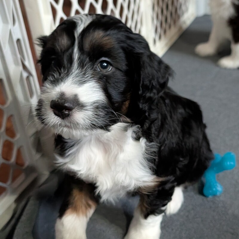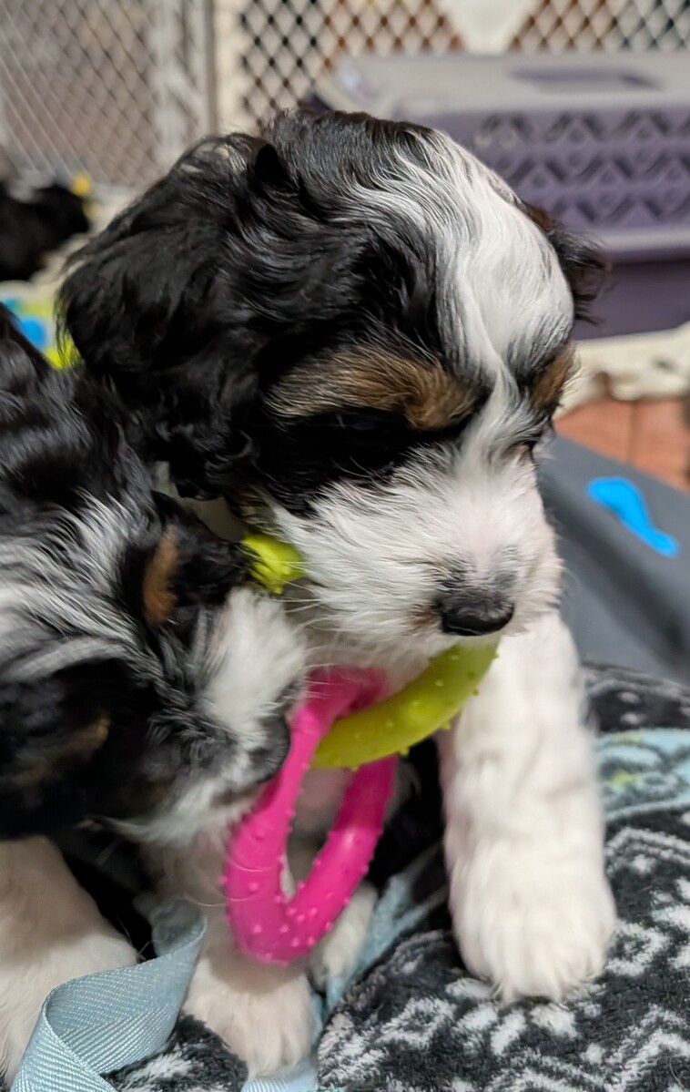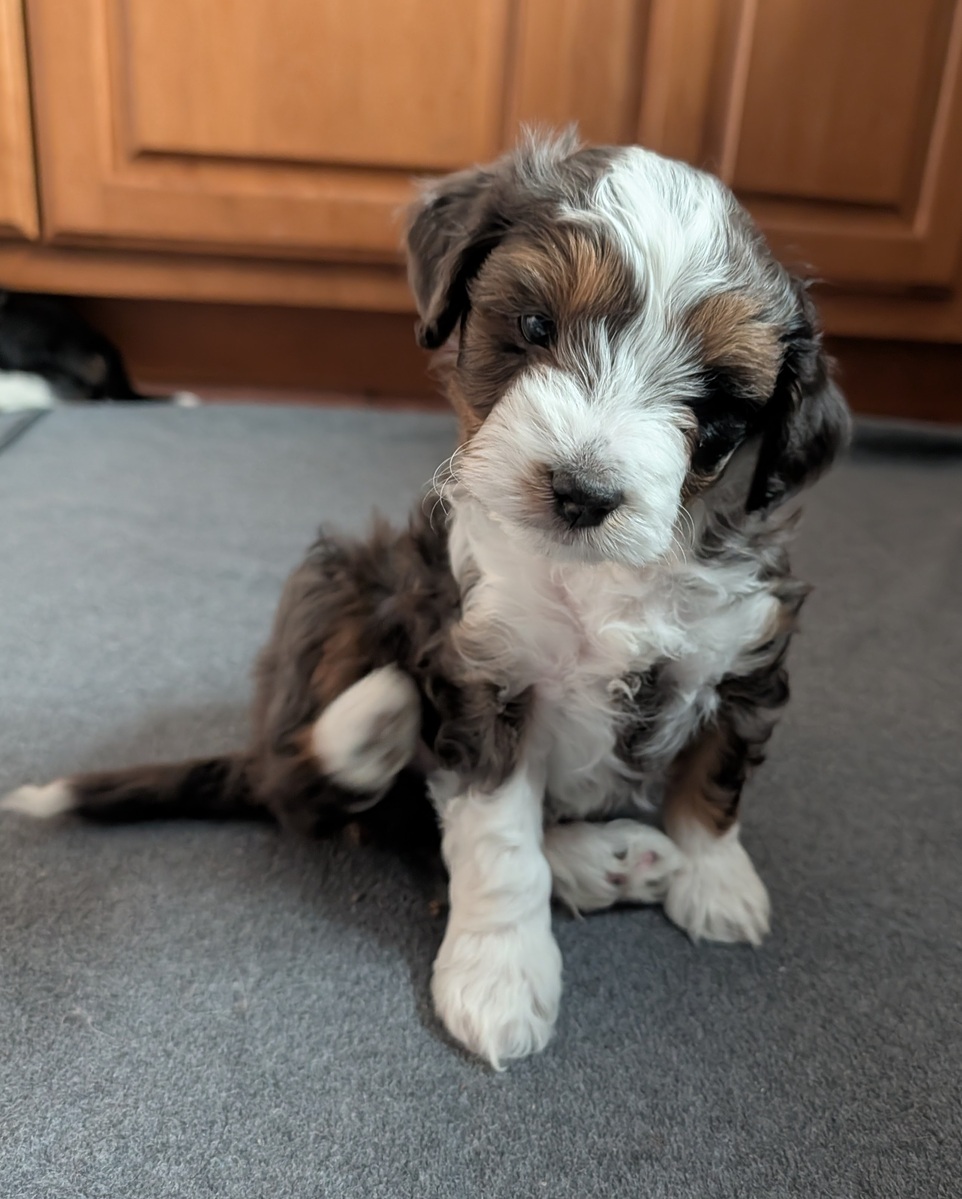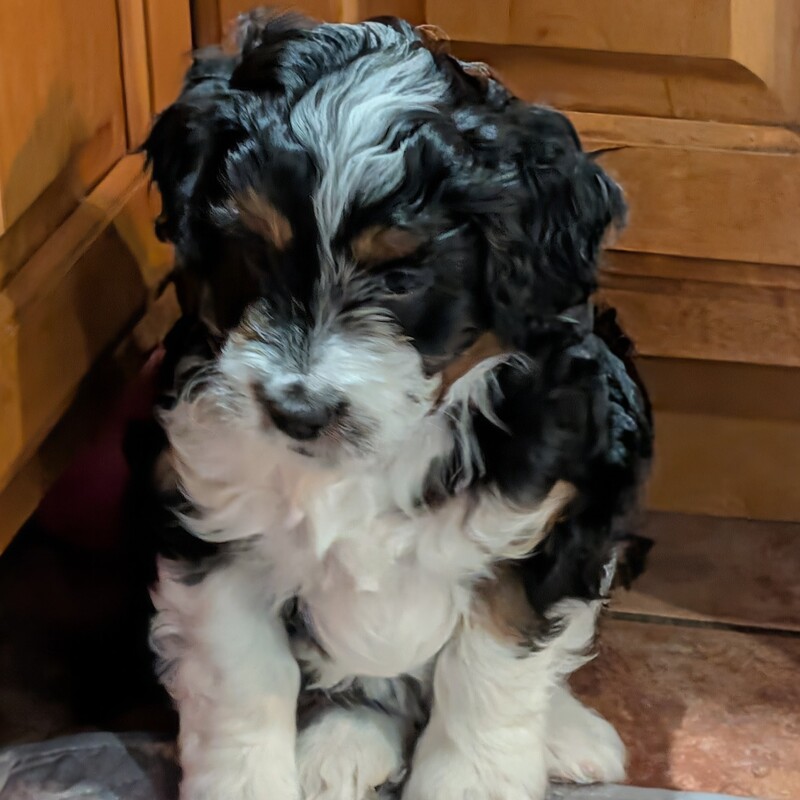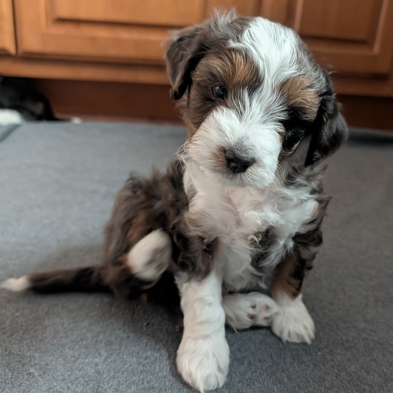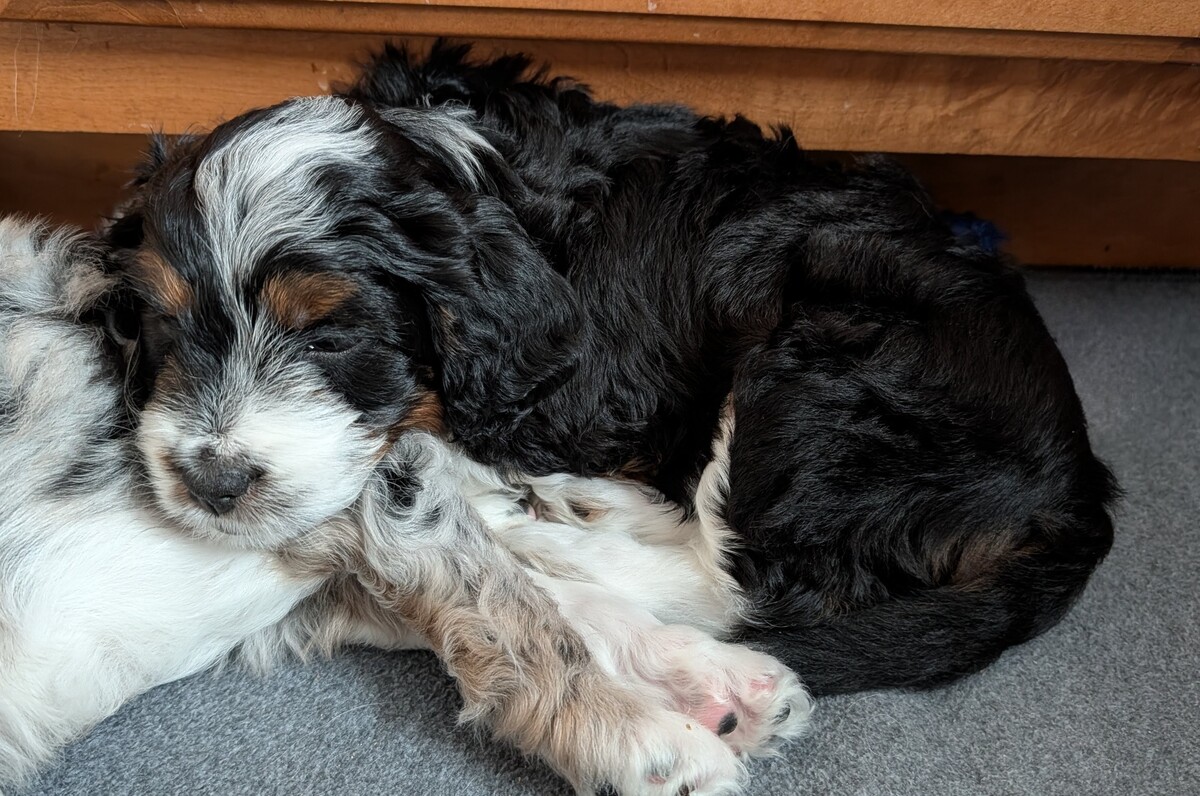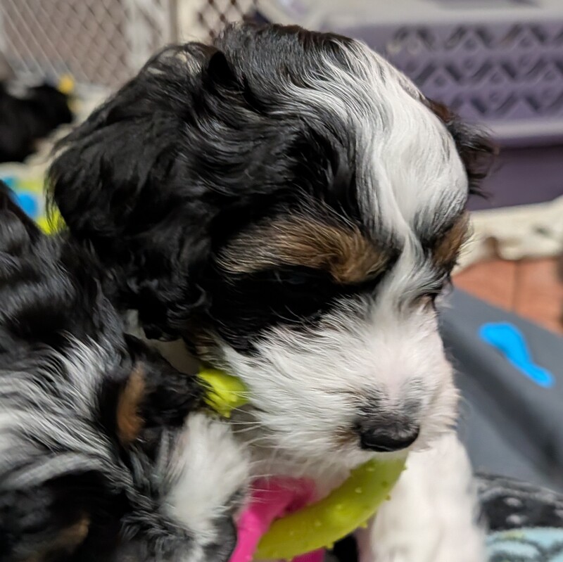 On November 24th, Sierra delivered 8 beautiful, healthy puppies. The litter consisted of 4 girls and 4 boys. Coat colors include Black Tri and variations of Blue Merle. While coat colors will vary as they get older, each puppy has their own unique markings.