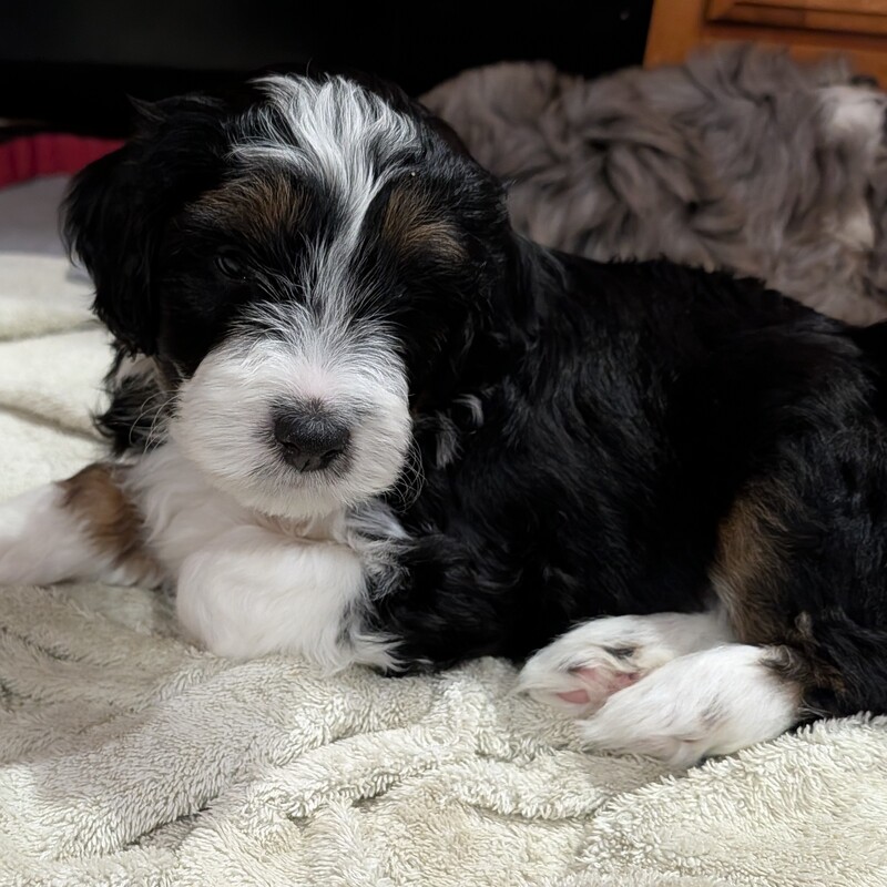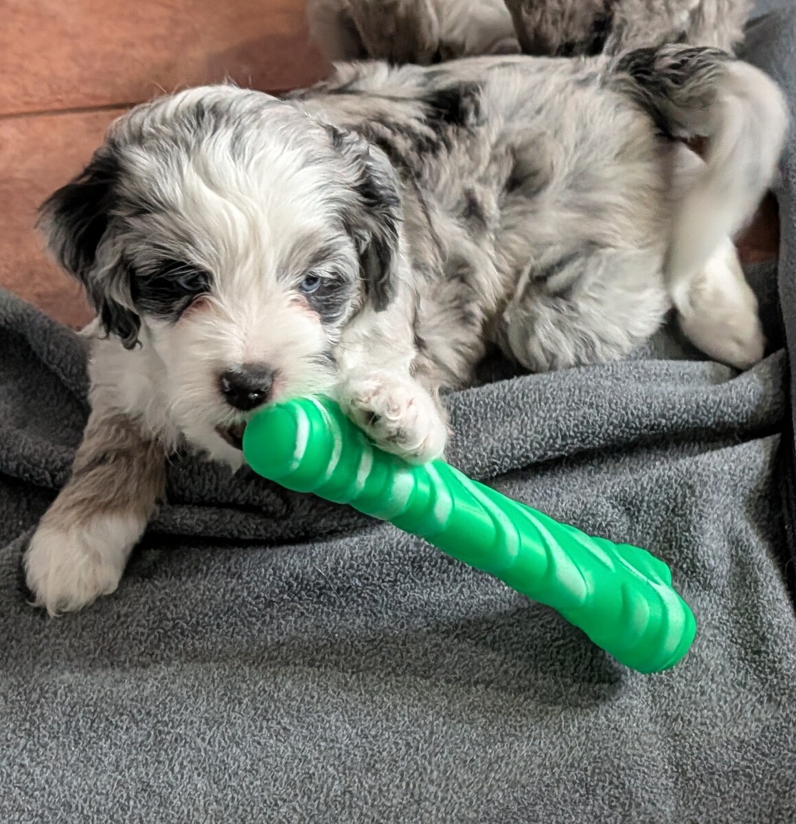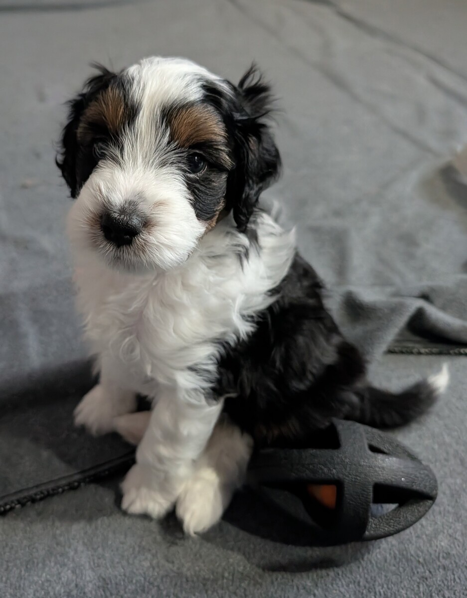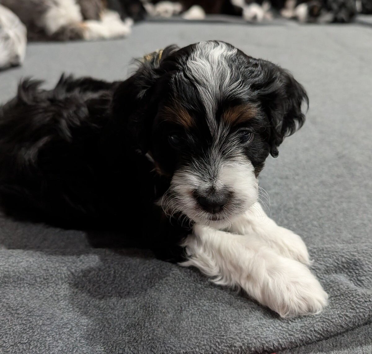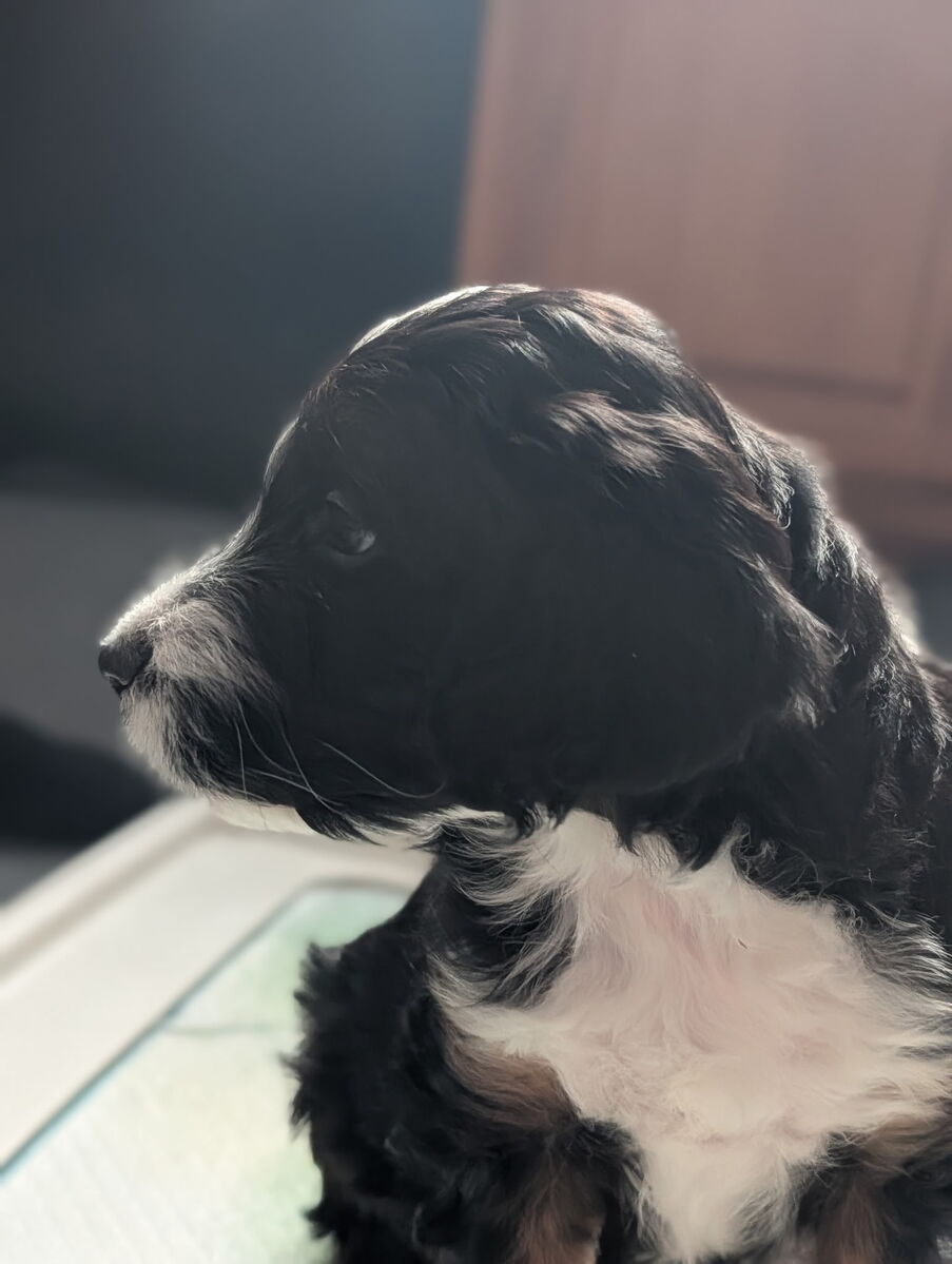 On November 24th, Sierra delivered 8 beautiful, healthy puppies. The litter consisted of 4 girls and 4 boys. Coat colors include Black Tri and variations of Blue Merle. While coat colors will vary as they get older, each puppy has their own unique markings.