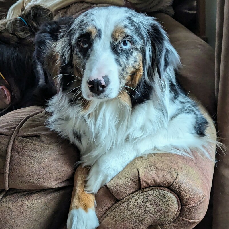 Allow us to introduce Sierra! Her registered name is Smiles and Wiggles, and it perfectly captures her joyful nature. She lights up with a smile and a happy wiggle whenever she's excited or content. Sierra is our ultimate game of fetch enthusiast- she'll happily bring the ball back all day if we let her. On calmer days, she's just as content curling up on your lap for some quiet time.